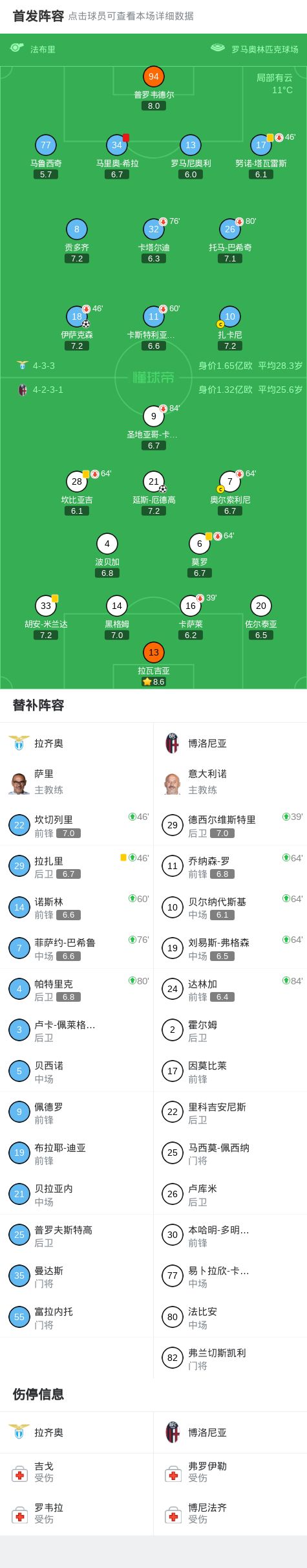 北京时间12月8日意大利足球顶级联赛 联赛 第14轮,拉齐奥主场对阵博洛尼亚。拉齐奥伊萨克森破门。博洛尼亚 延斯-厄德高破门。最终比分拉齐奥 1-1 博洛尼亚。